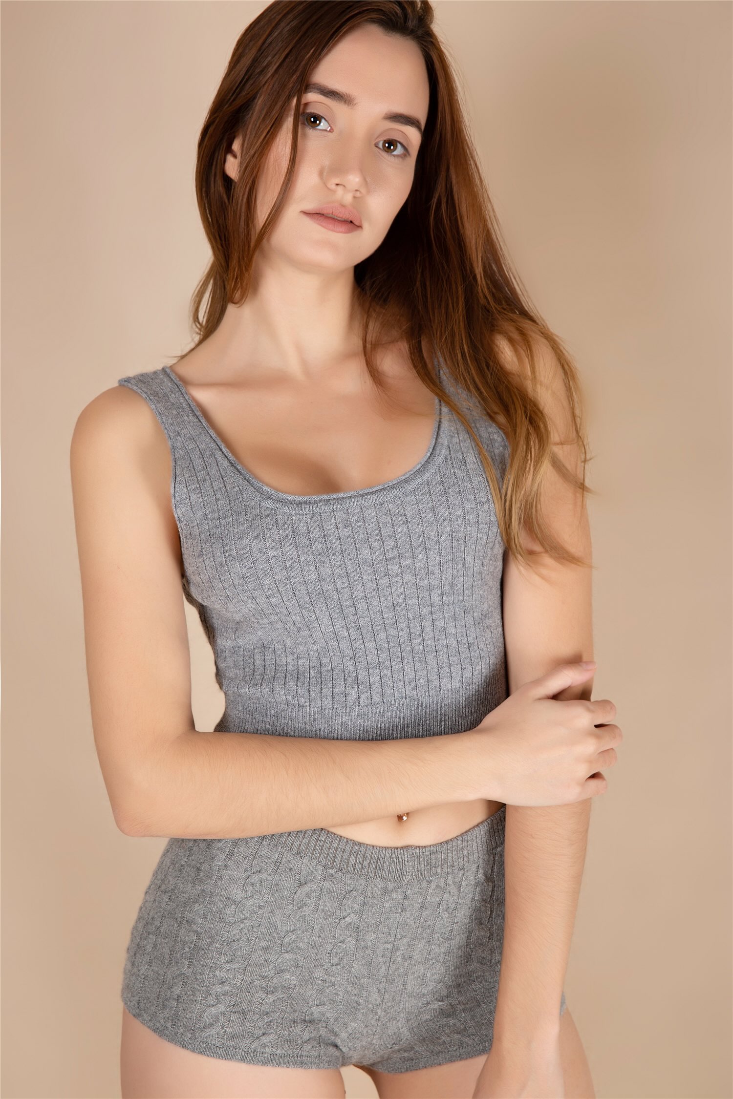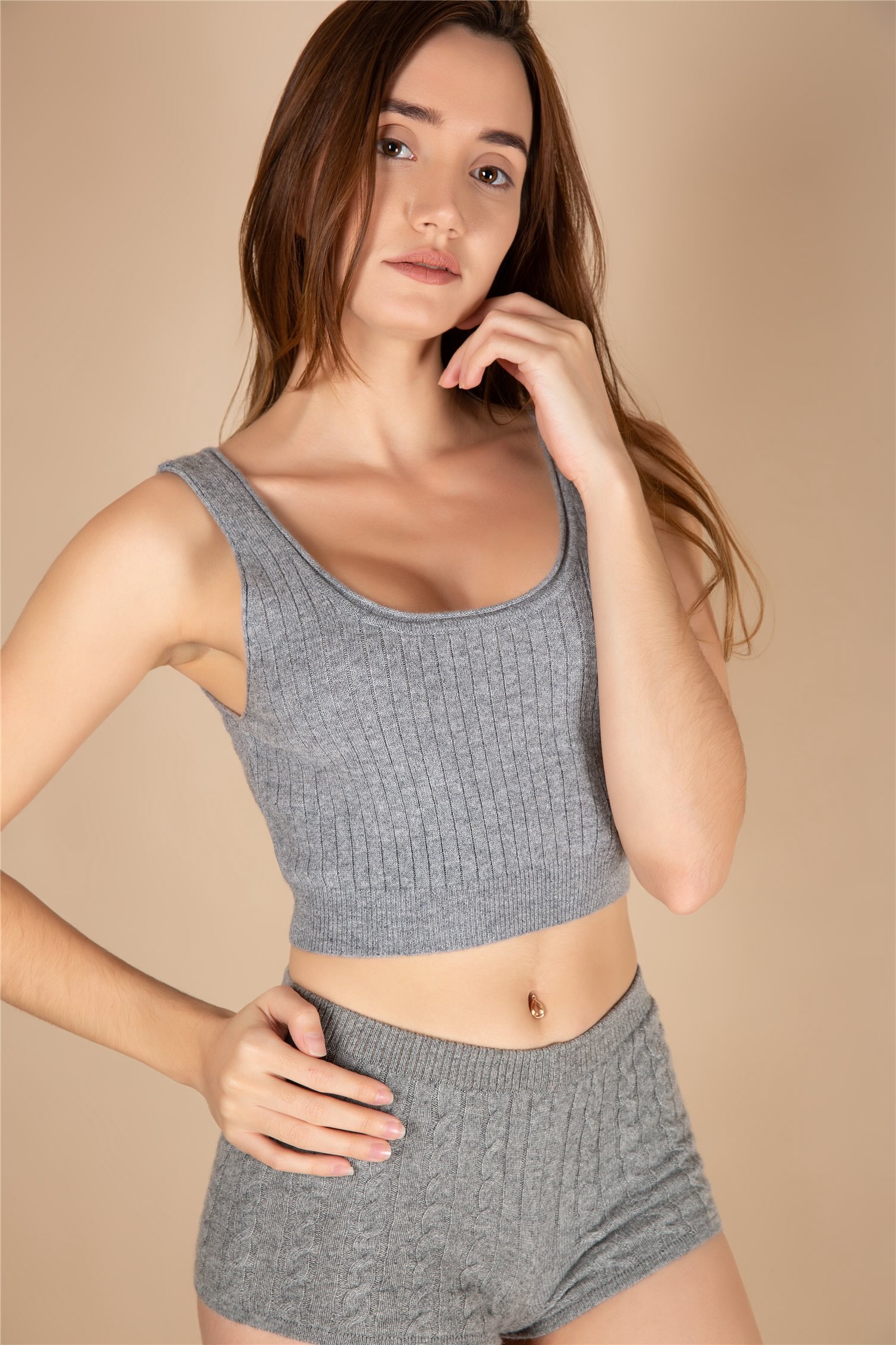 | Description | Cashmere Rib Knit Sports Bra 12GG |