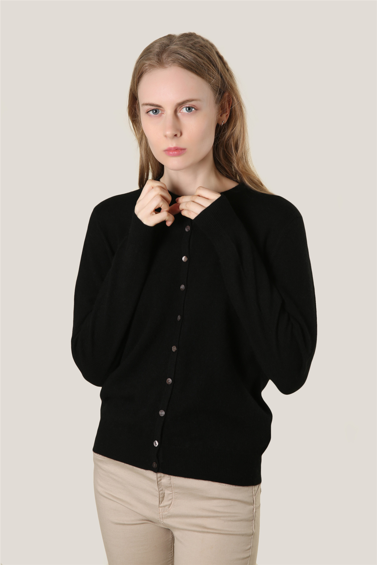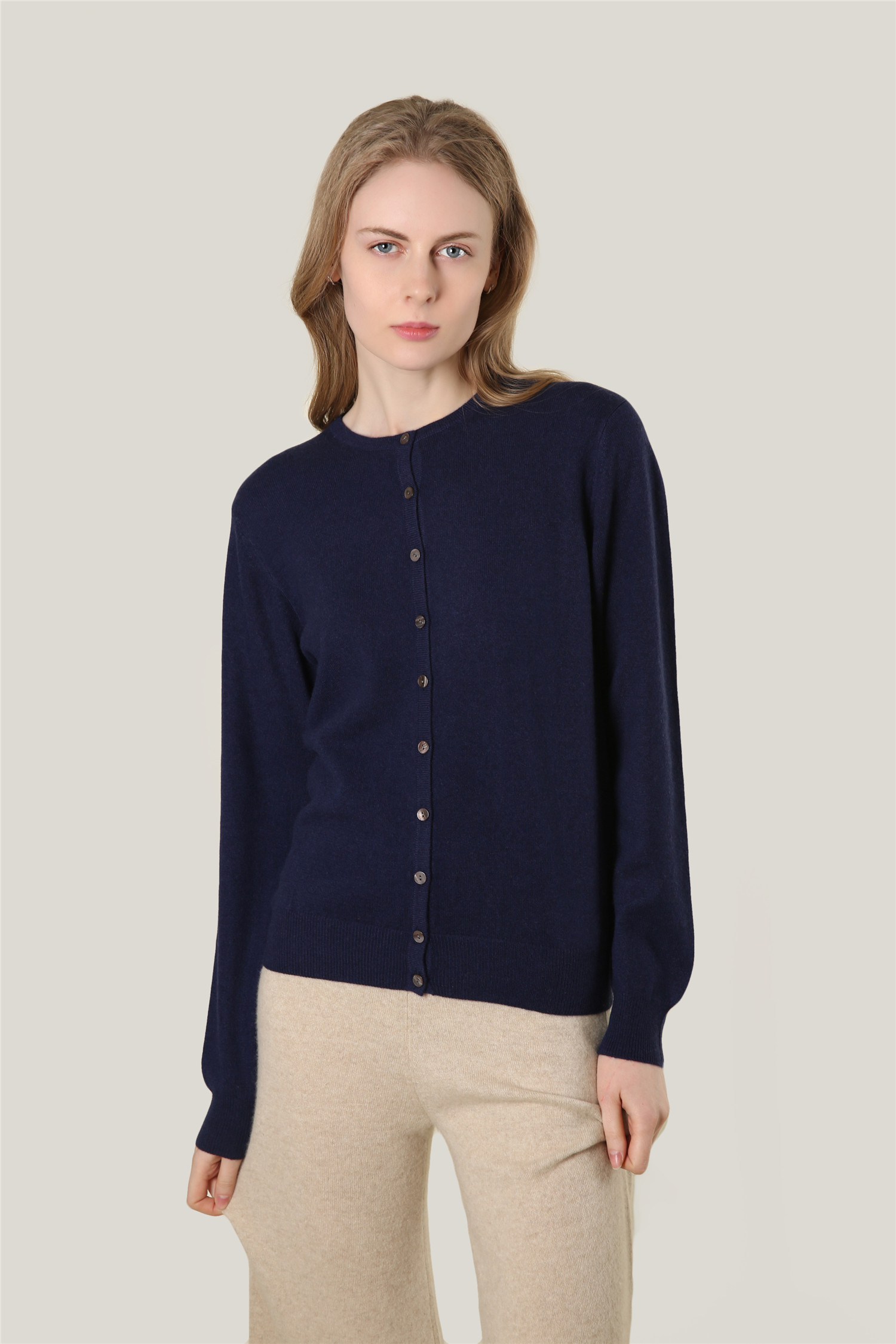 | Description | Ladies Crew Neck Button Cardigan 12GG |