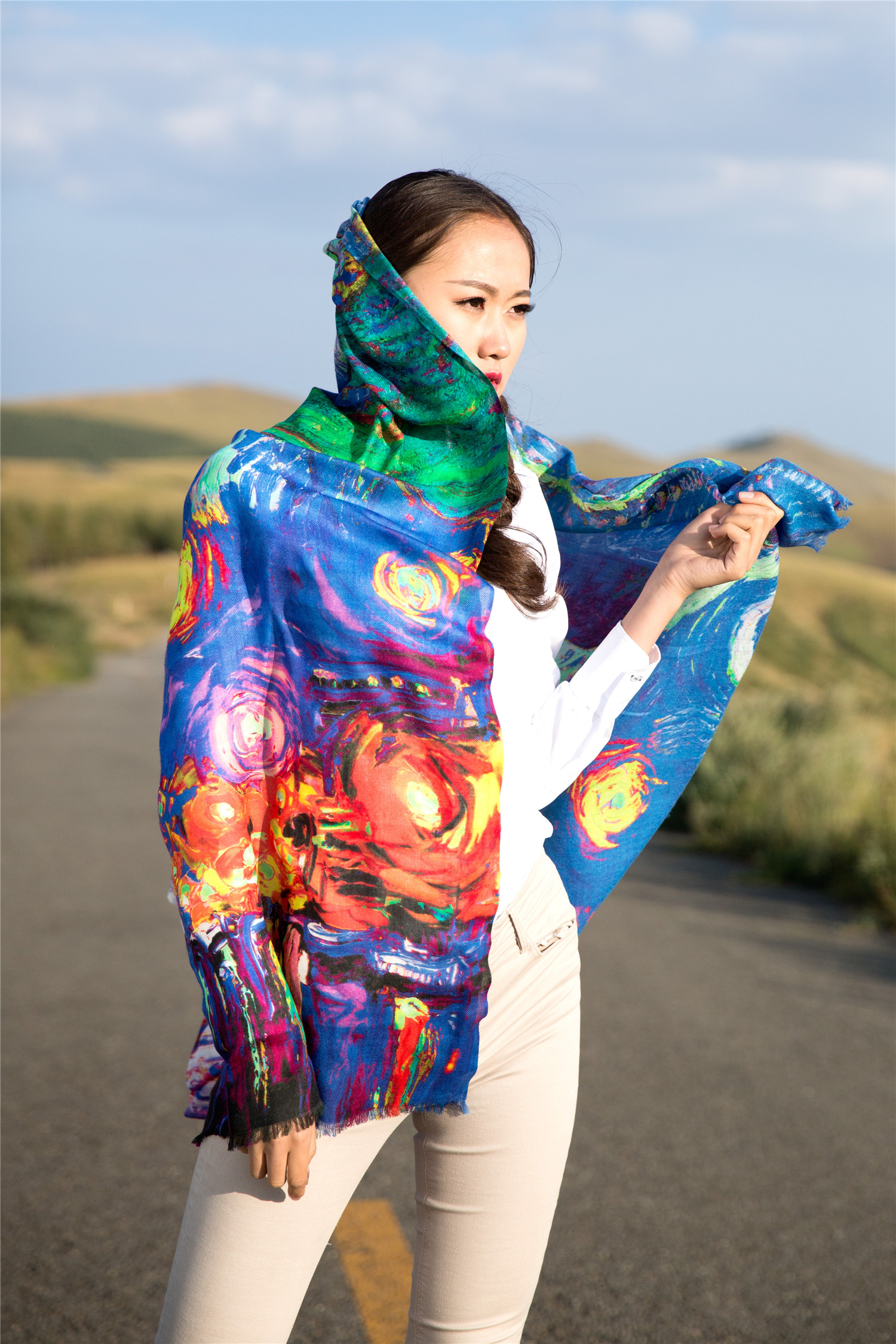 | Description | Merino Wool Worsted Digital Print Scarf - Starry Night |