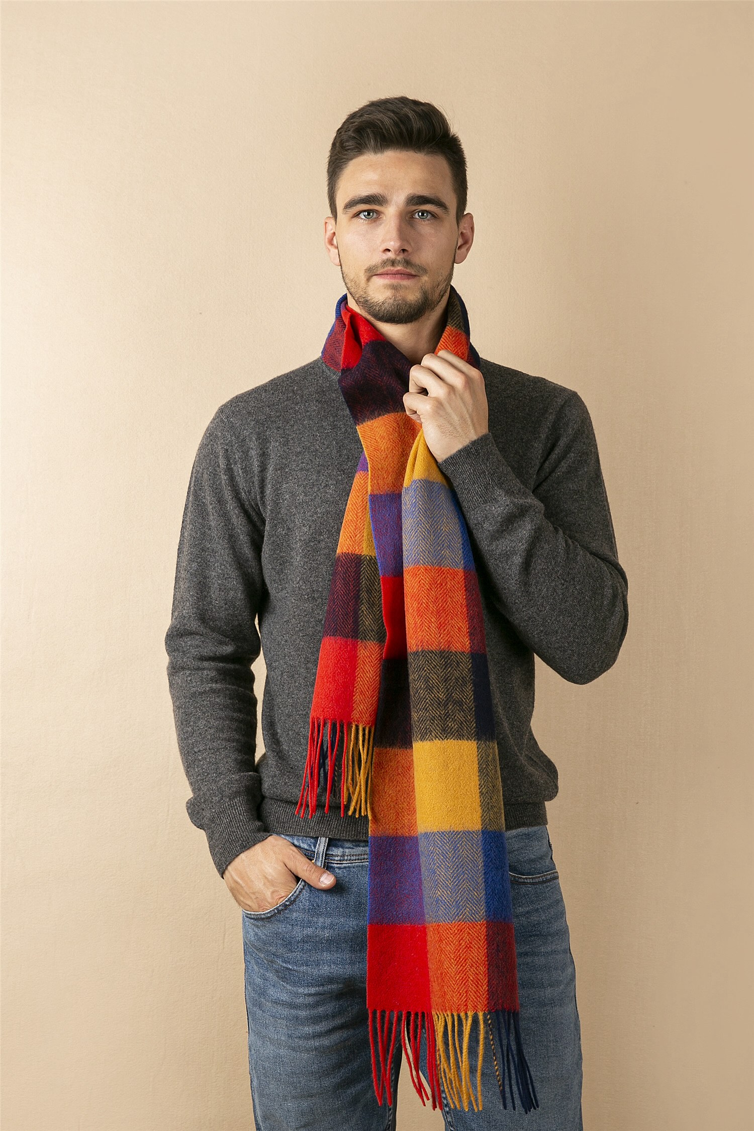 | Description | Herringbone Woven Big Check Scarf 30x164cm |