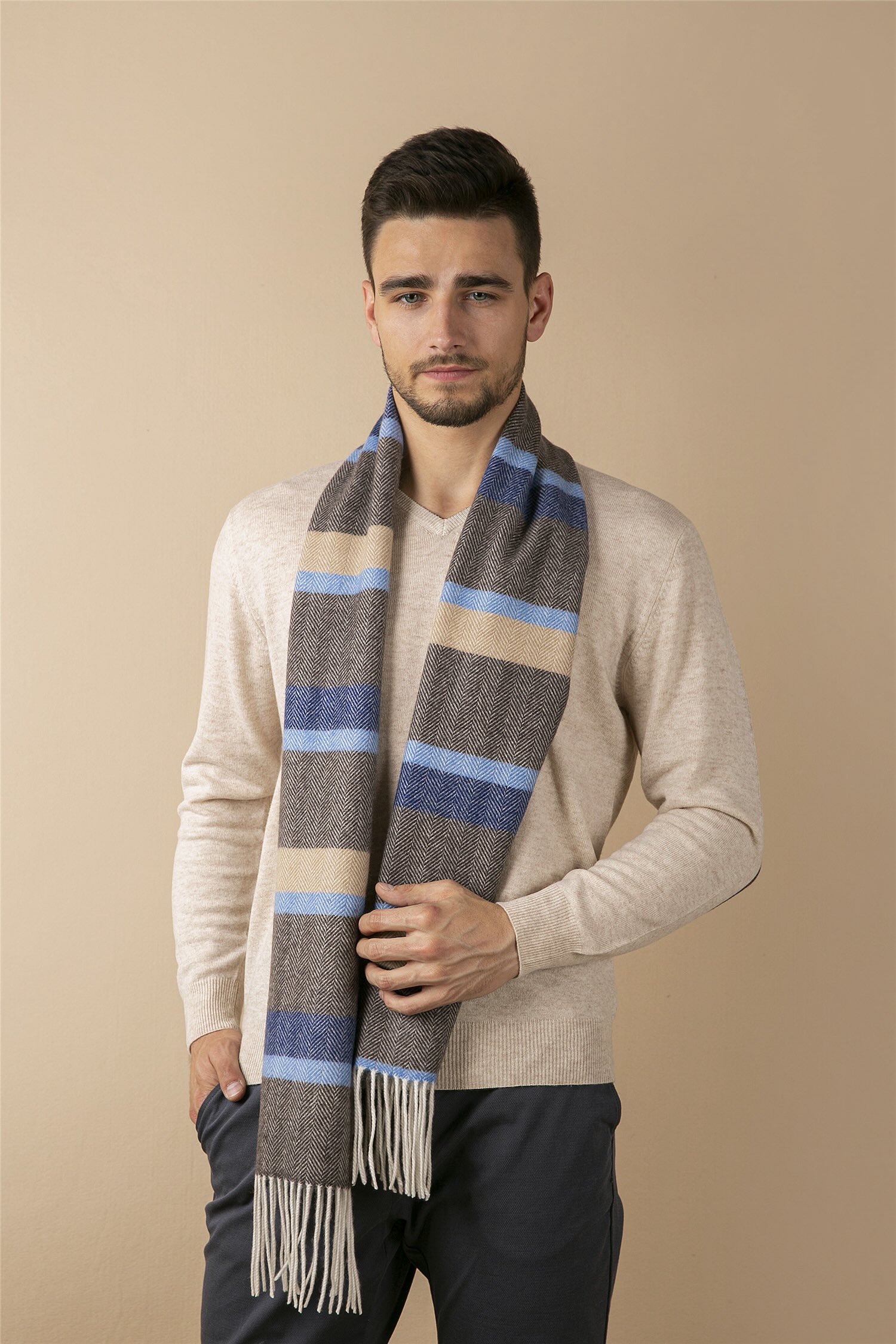 | Description | Herringbone Woven Block Stripe Scarf 30x164cm |