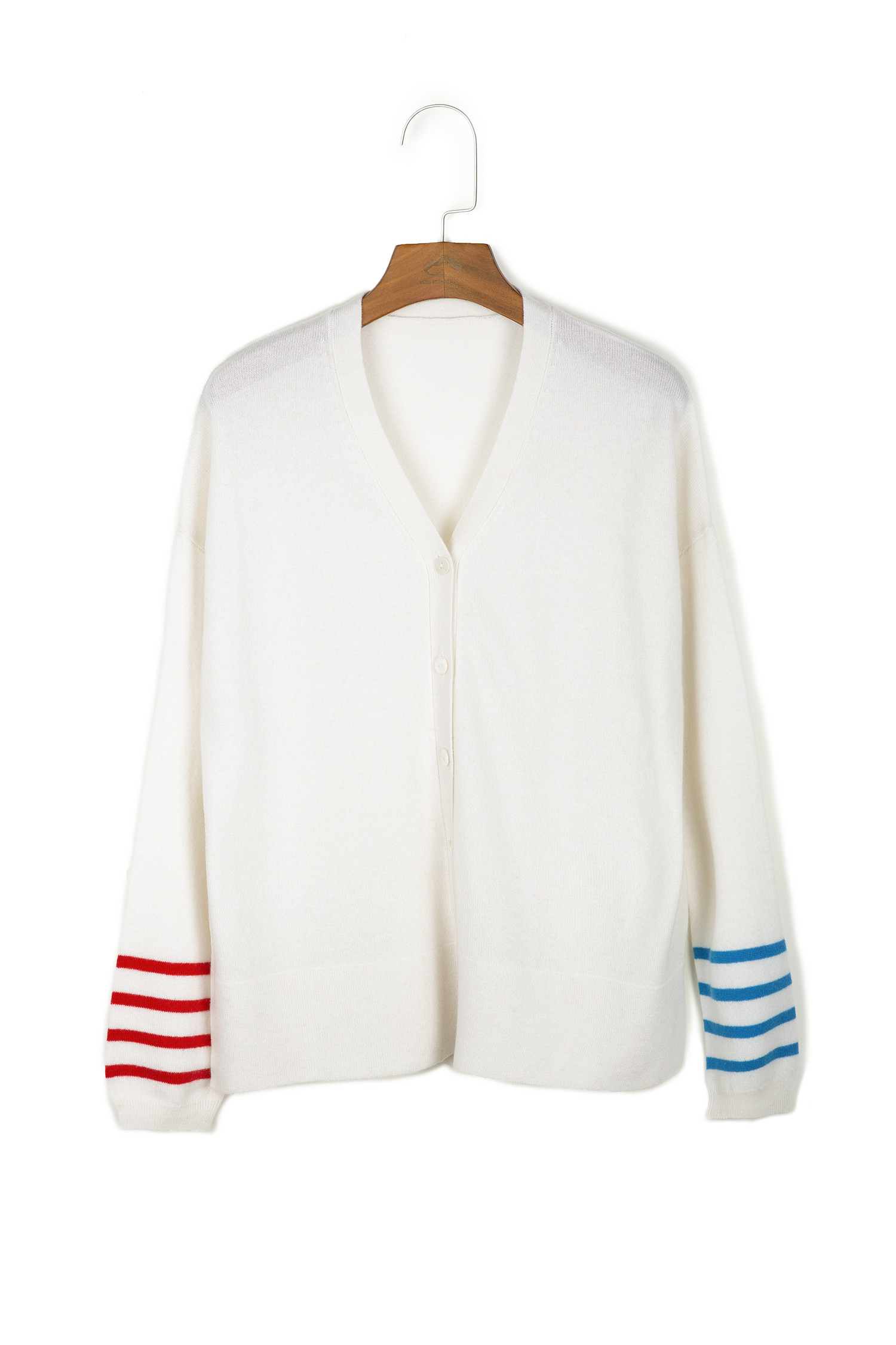 | Description | V Neck Button Cardigan with Cuff Stripes 12GG |