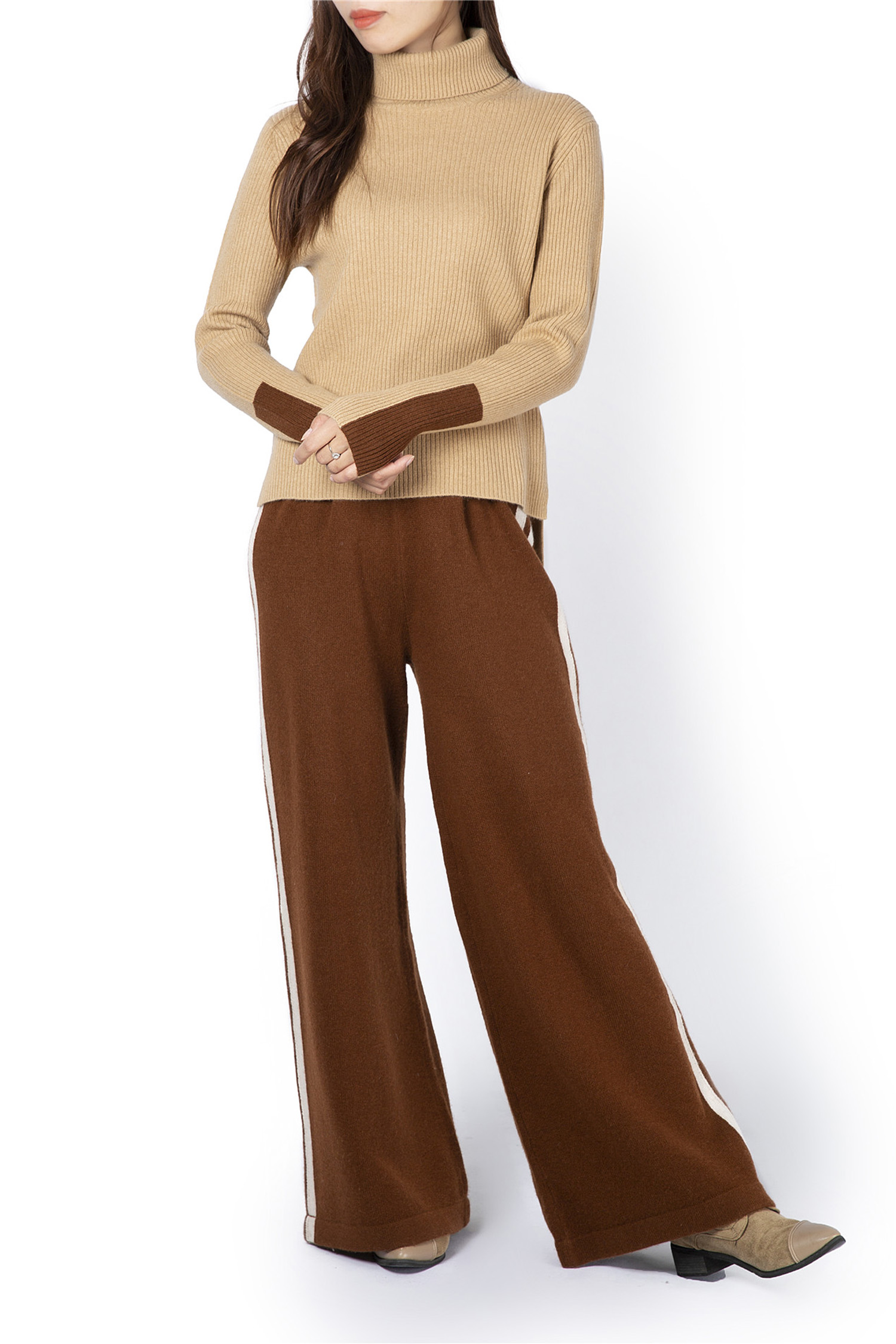 | Description | Turtleneck Neck Rib Knit Sweater with Slit and Cuff Block 12GG |