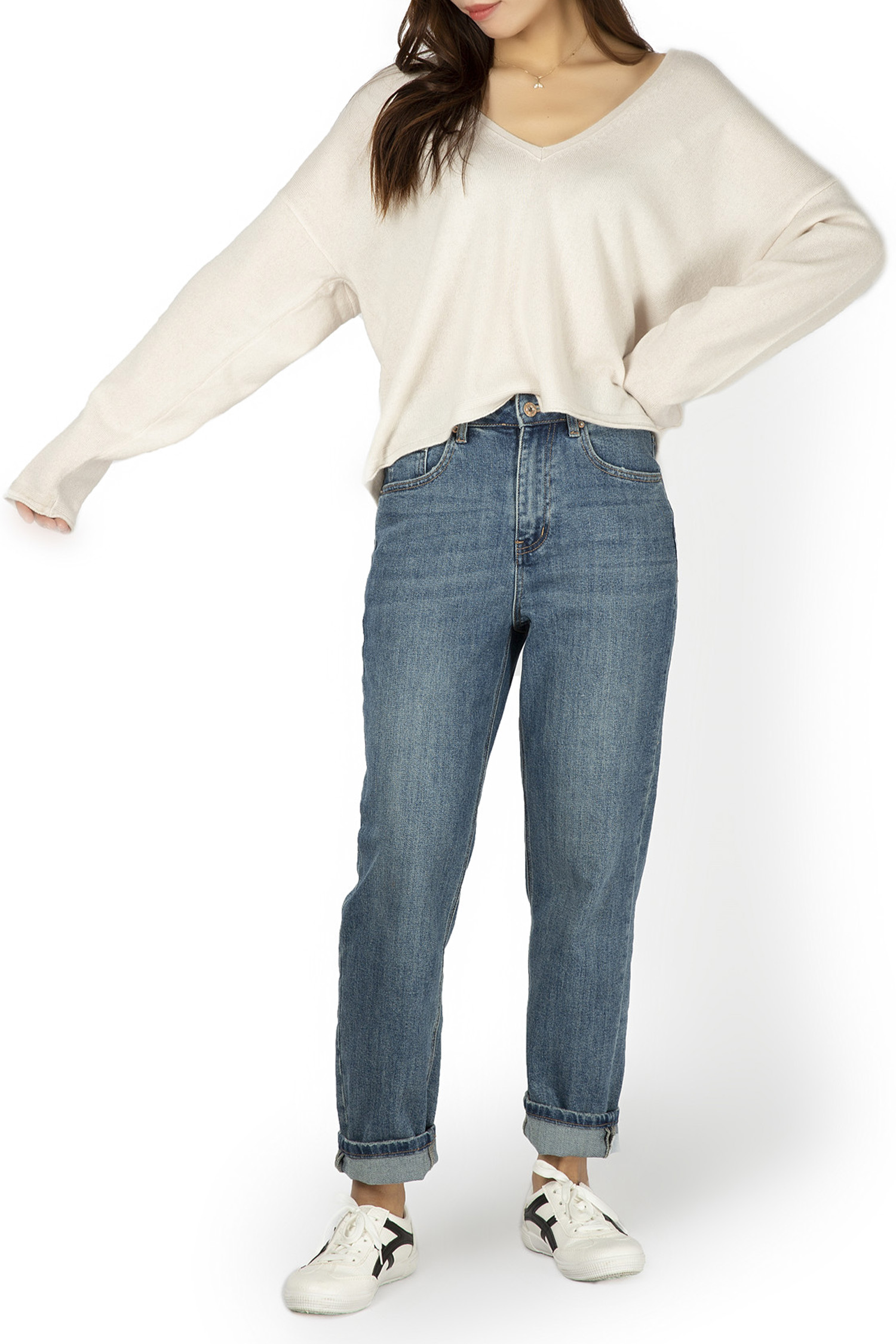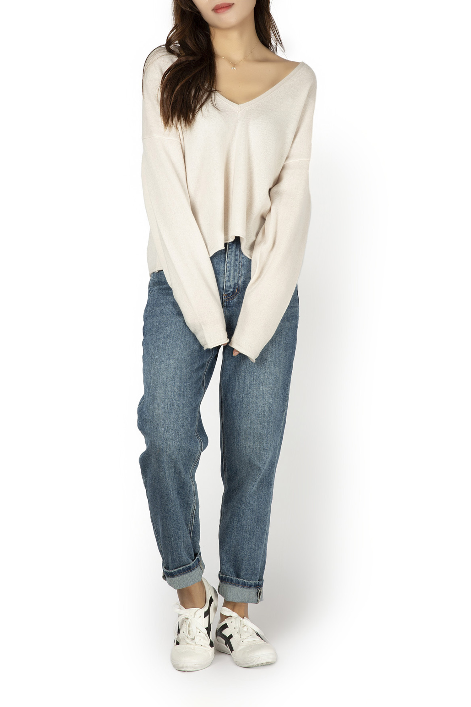 | Description | Big V Neck Plain Knit Loose Jumper 12GG |