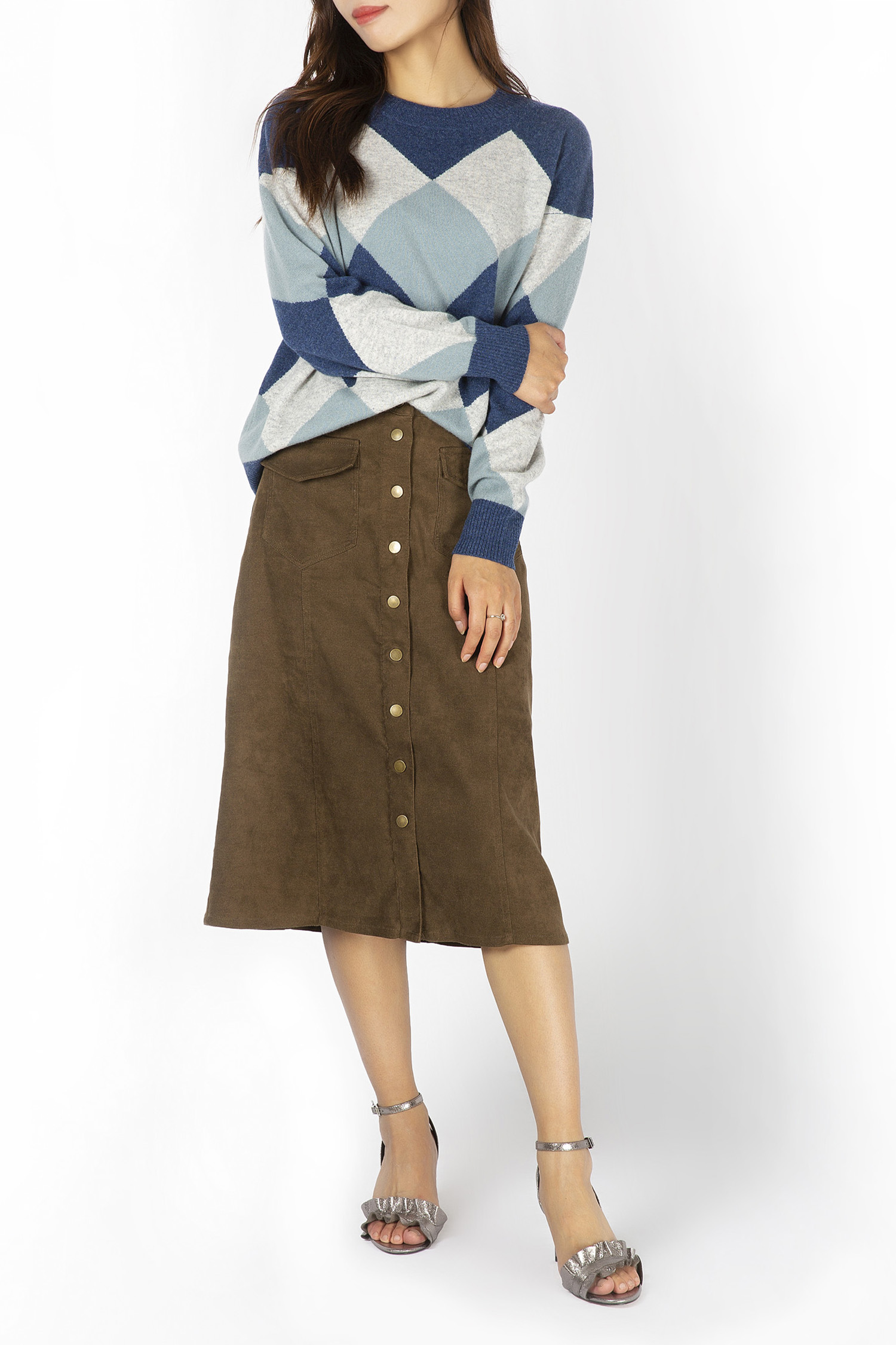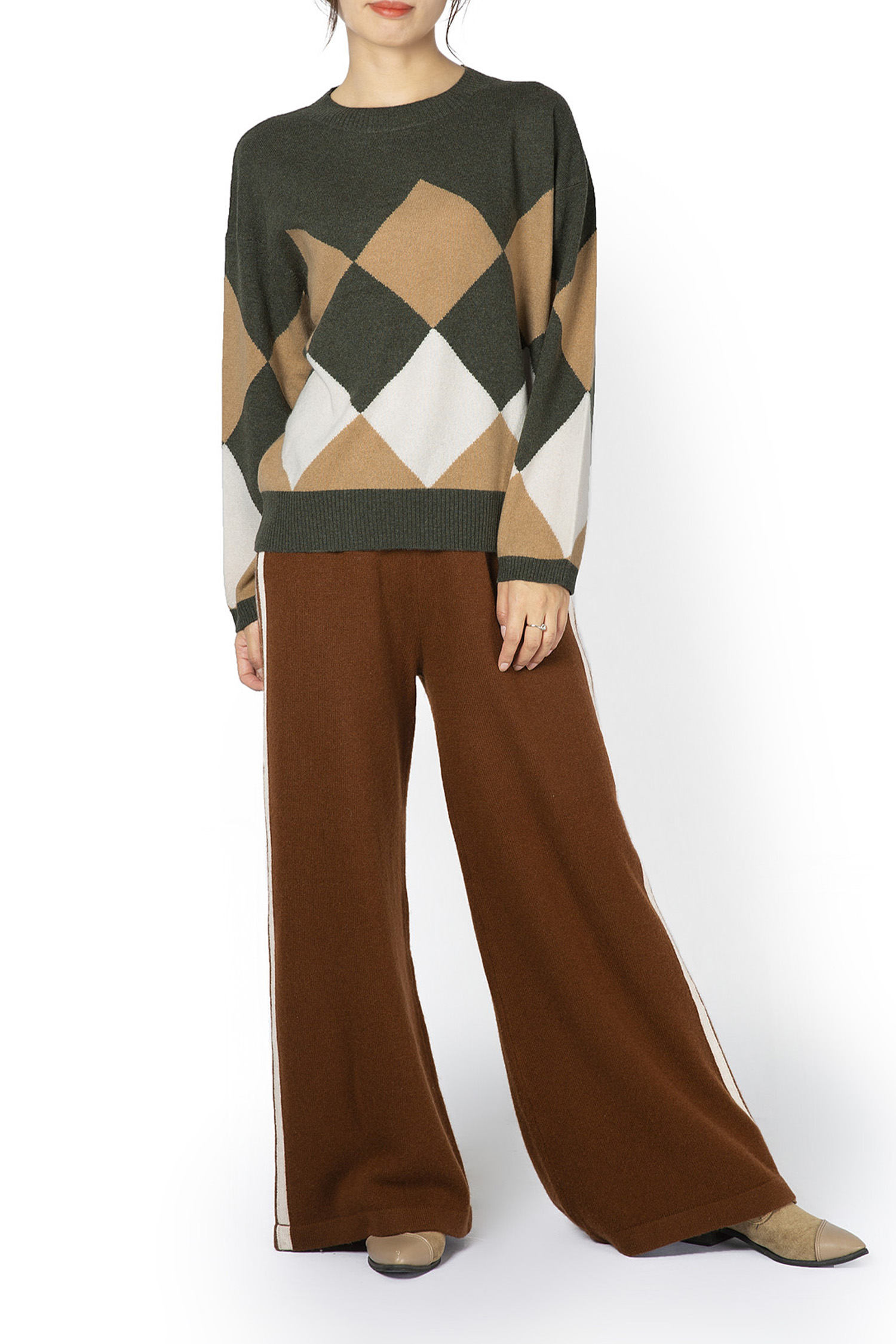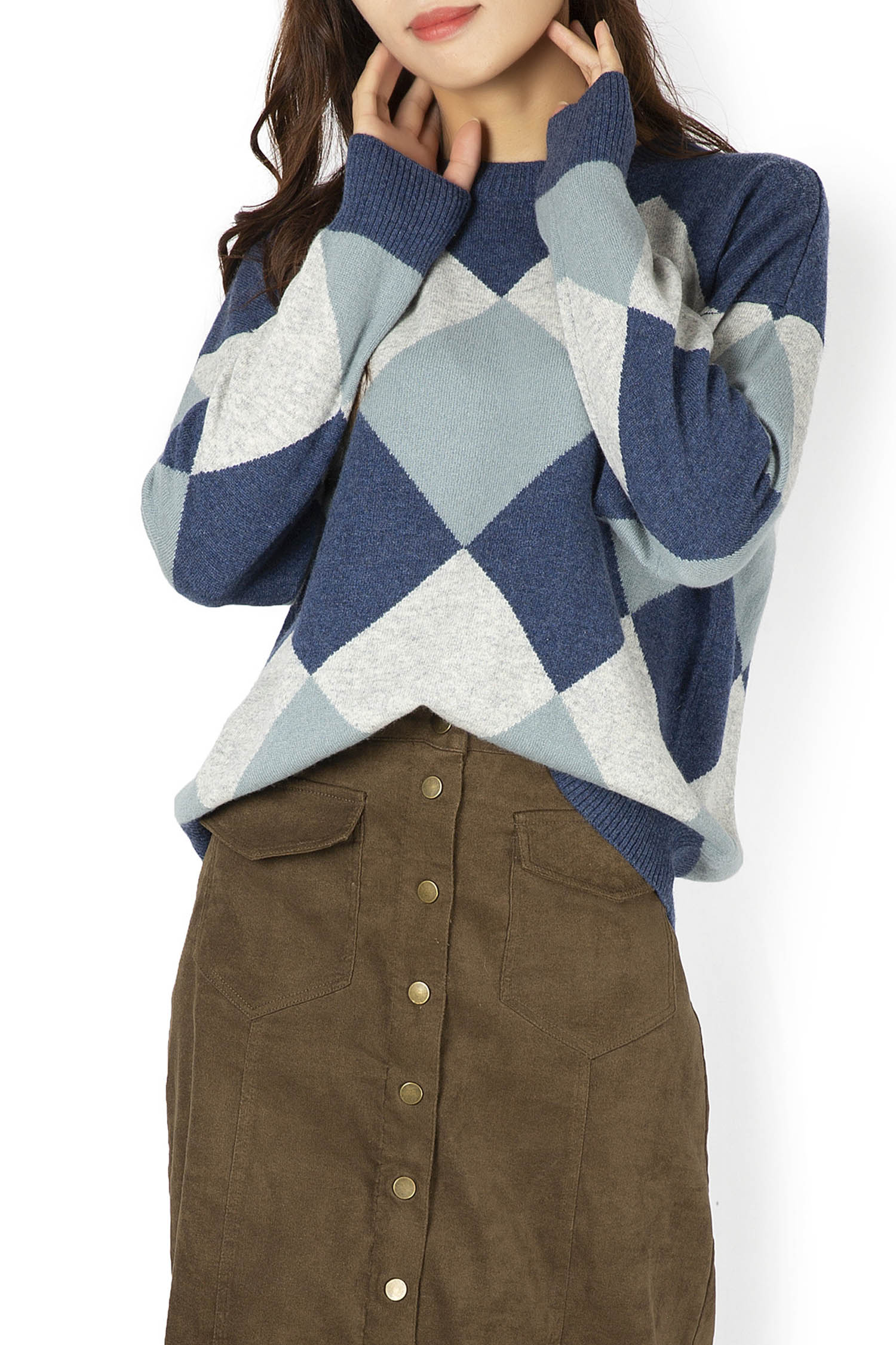 | Description | Crew Neck Plain Knit Diamond Intarsia Sweater 12GG |