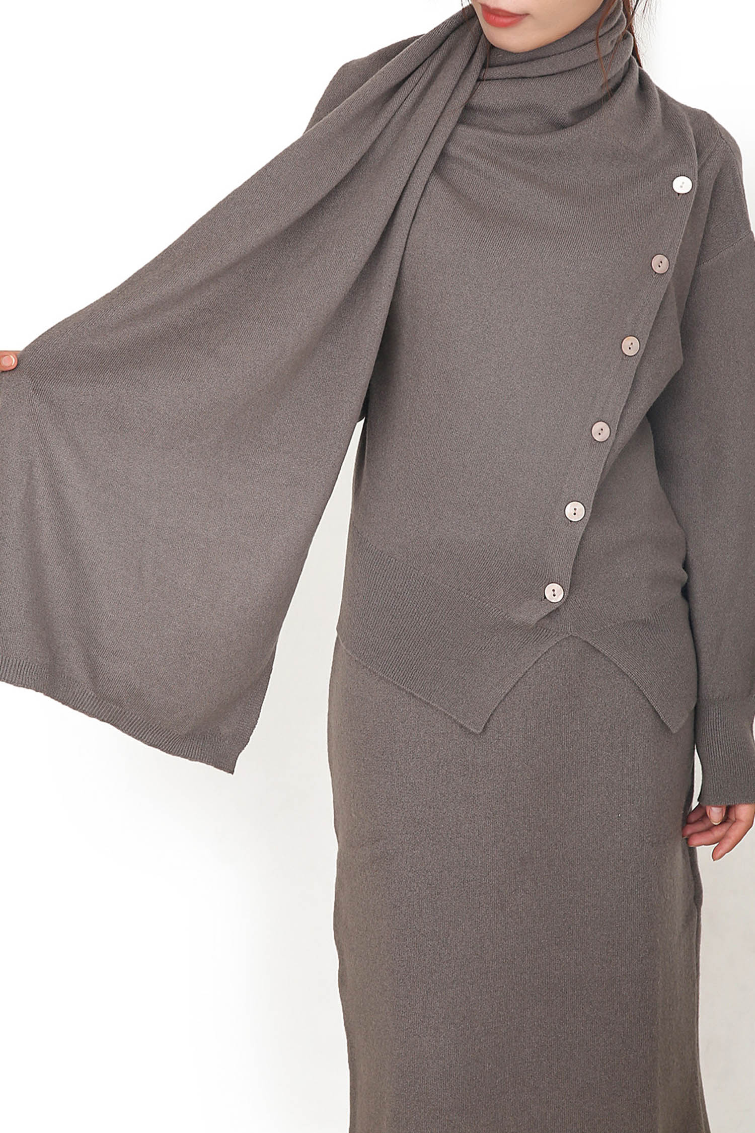 | Description | Plain Knit Button Cardigan Sweater with Scarf 12GG |