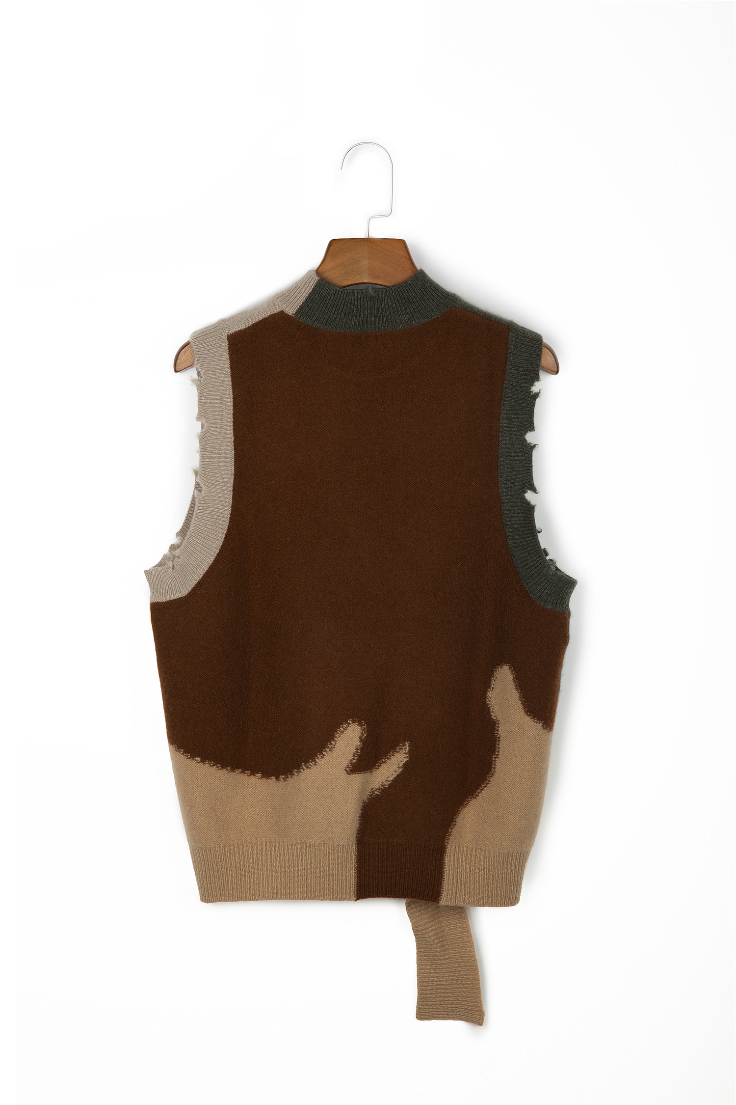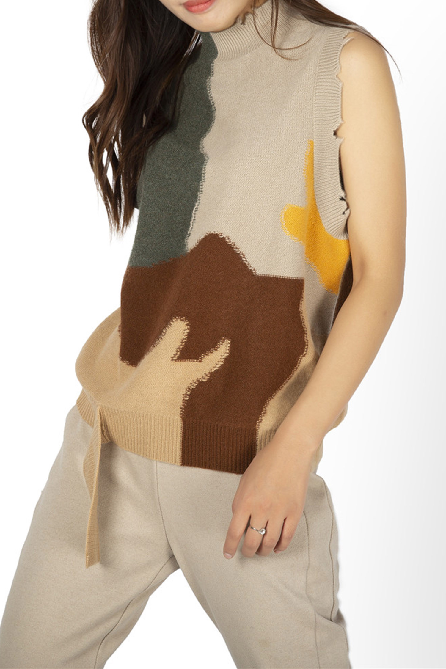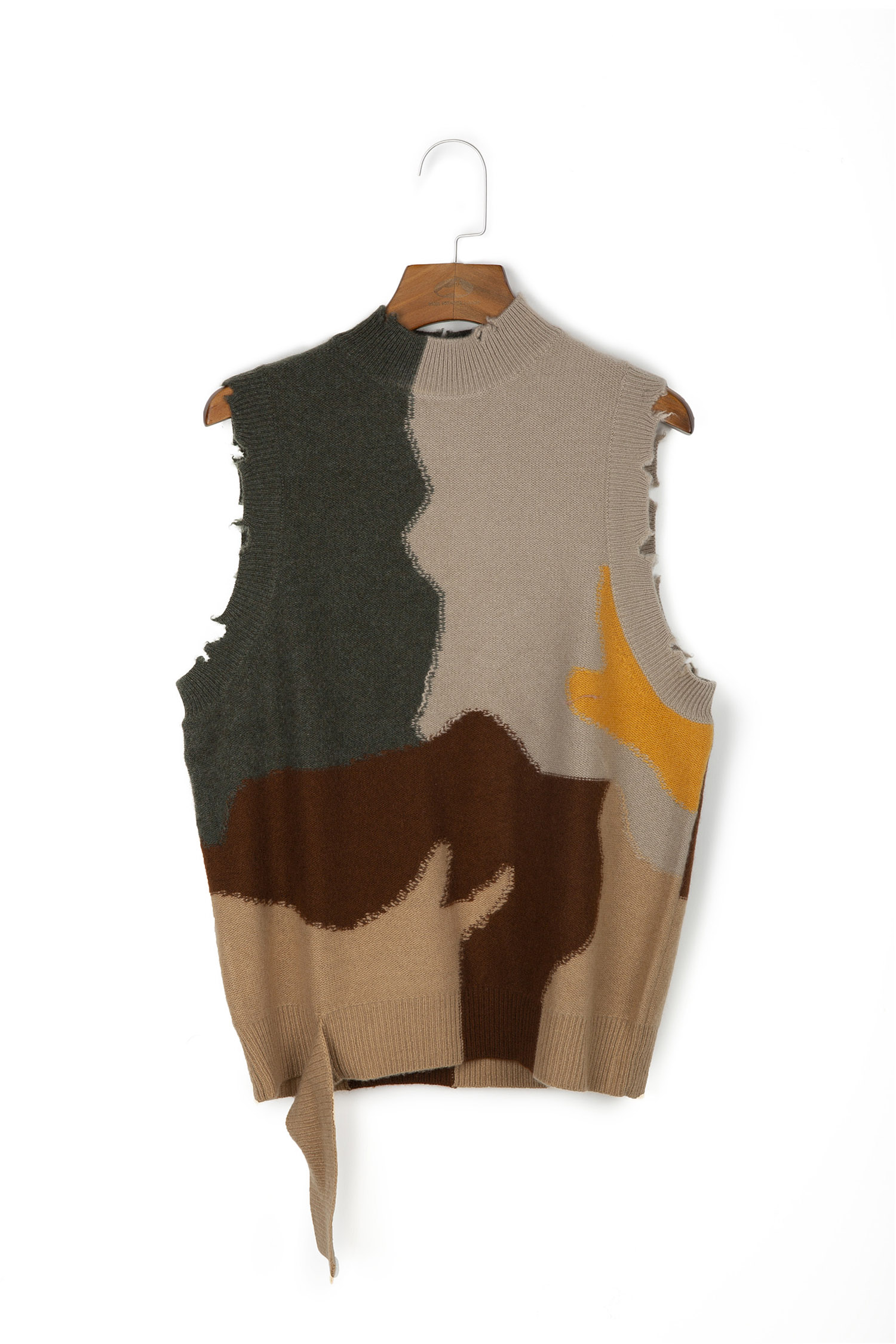| Description | High Neck Intarsia Irregular Block Pattern Vest with Broken Edges 7GG |