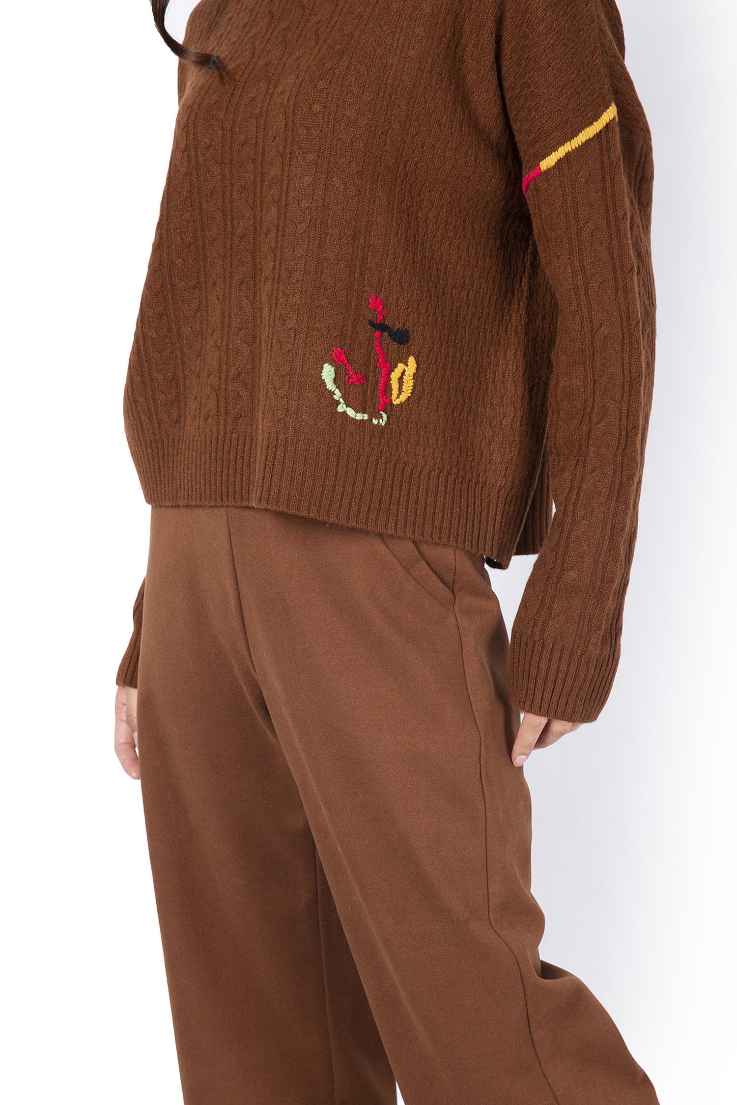 | Description | Crew Neck Cable Knit Loose Jumper with Hand Stitched Pattern 7GG |