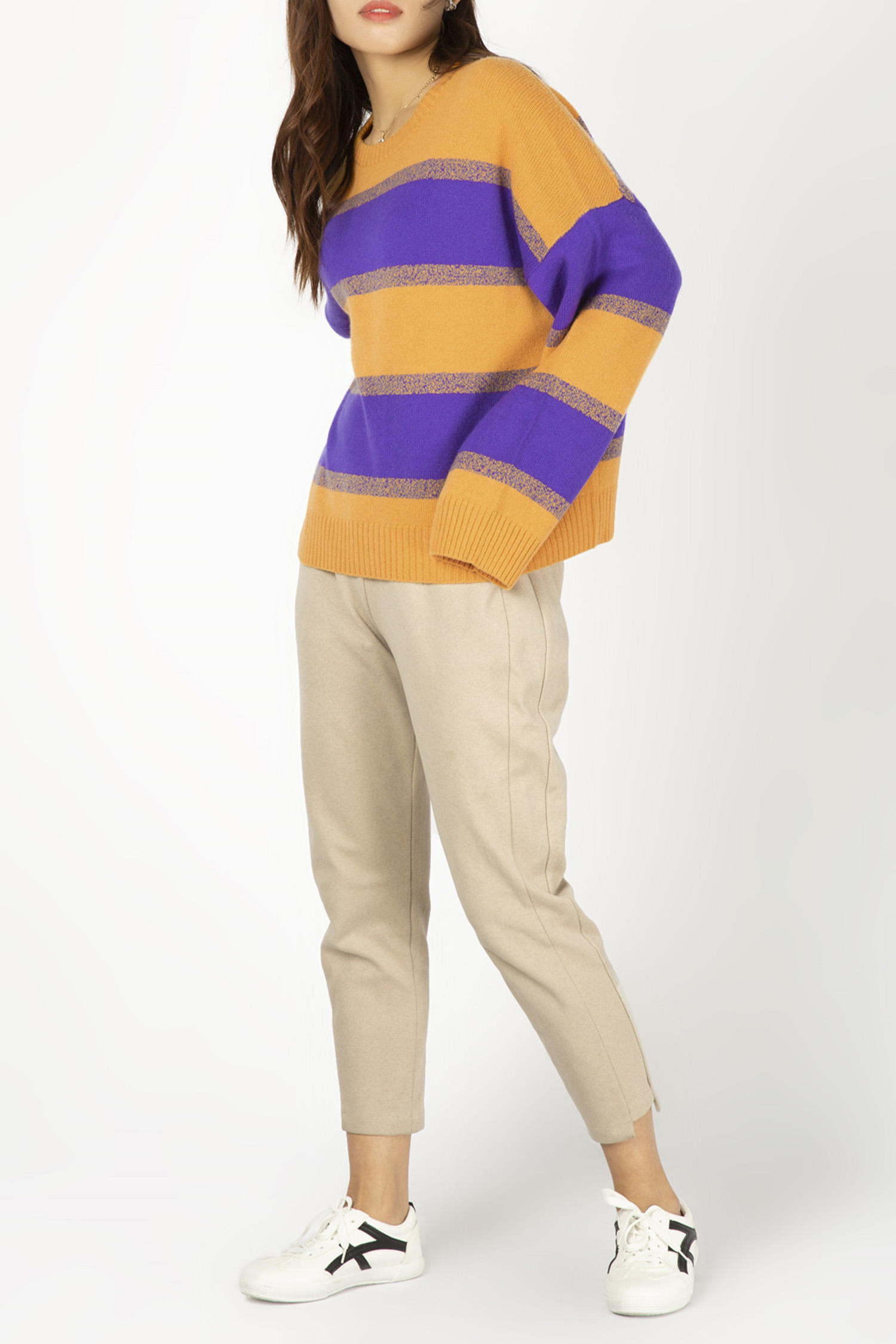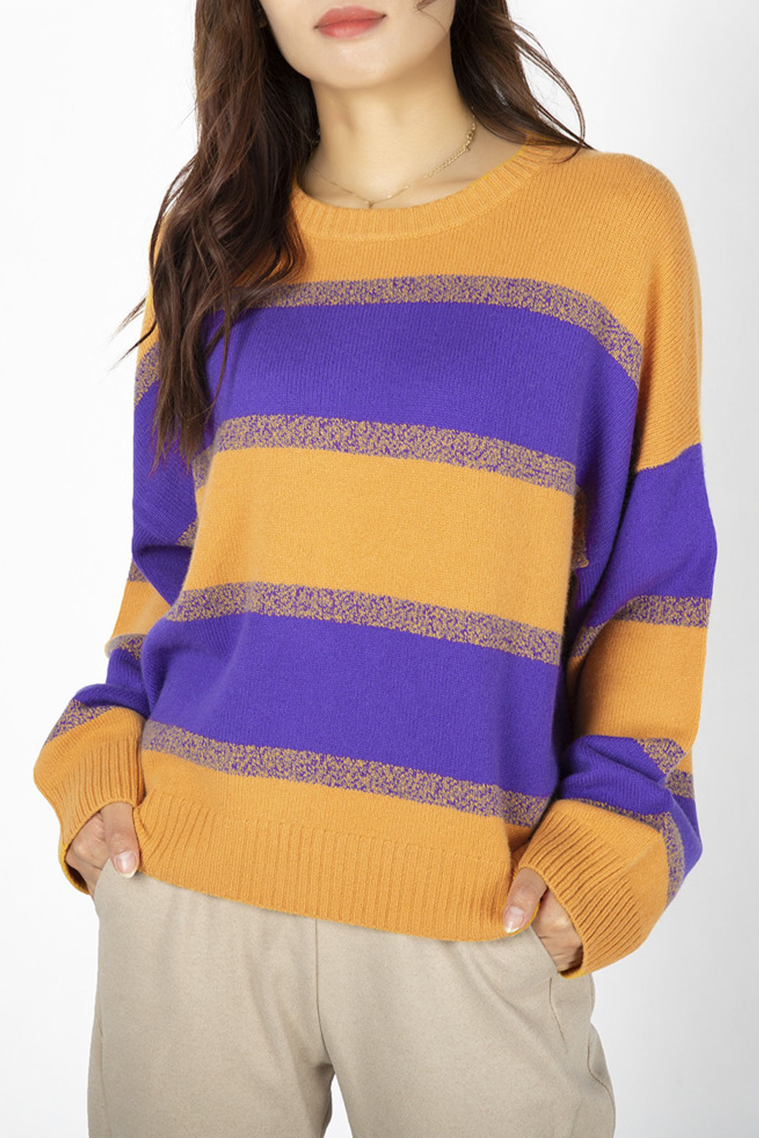 | Description | Crew Neck Horizontal Big Stripe Plain Knit Jumper 7GG |