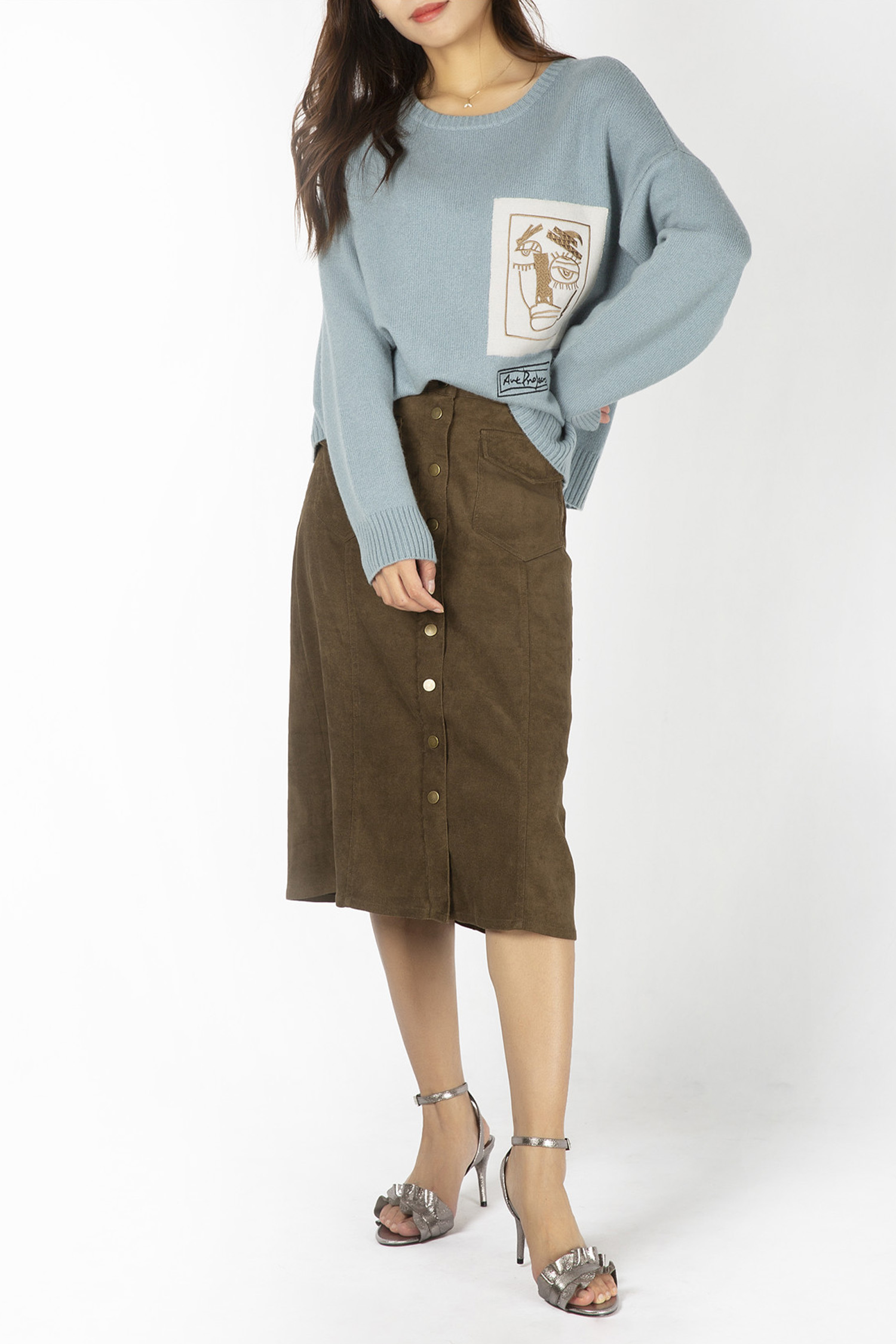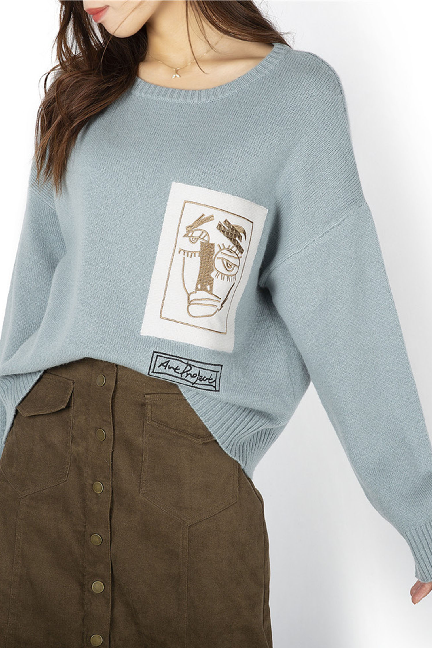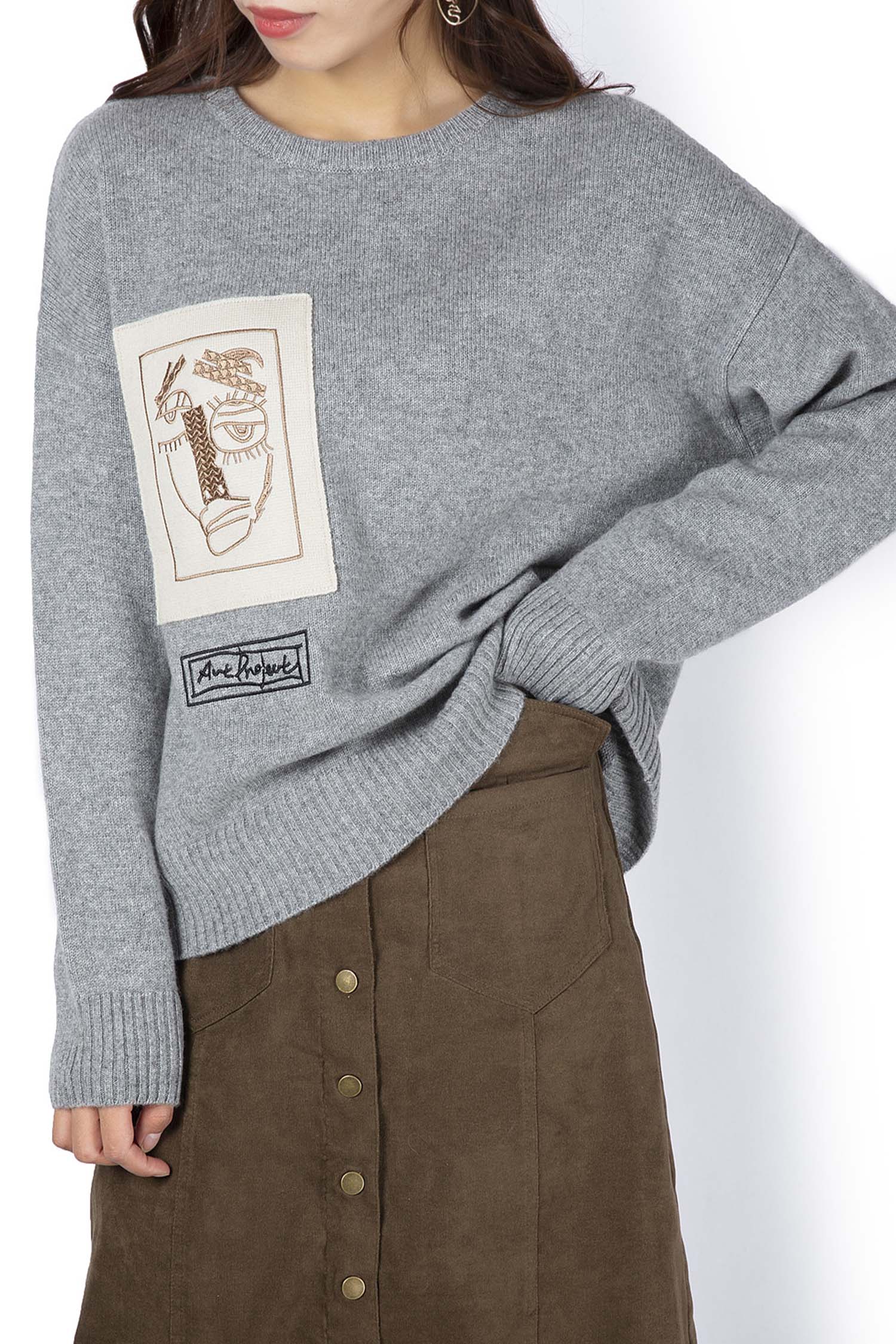 | Description | Crew Neck Plain Knit Loose Pullover with Monster Patch and Embroidery 7GG |